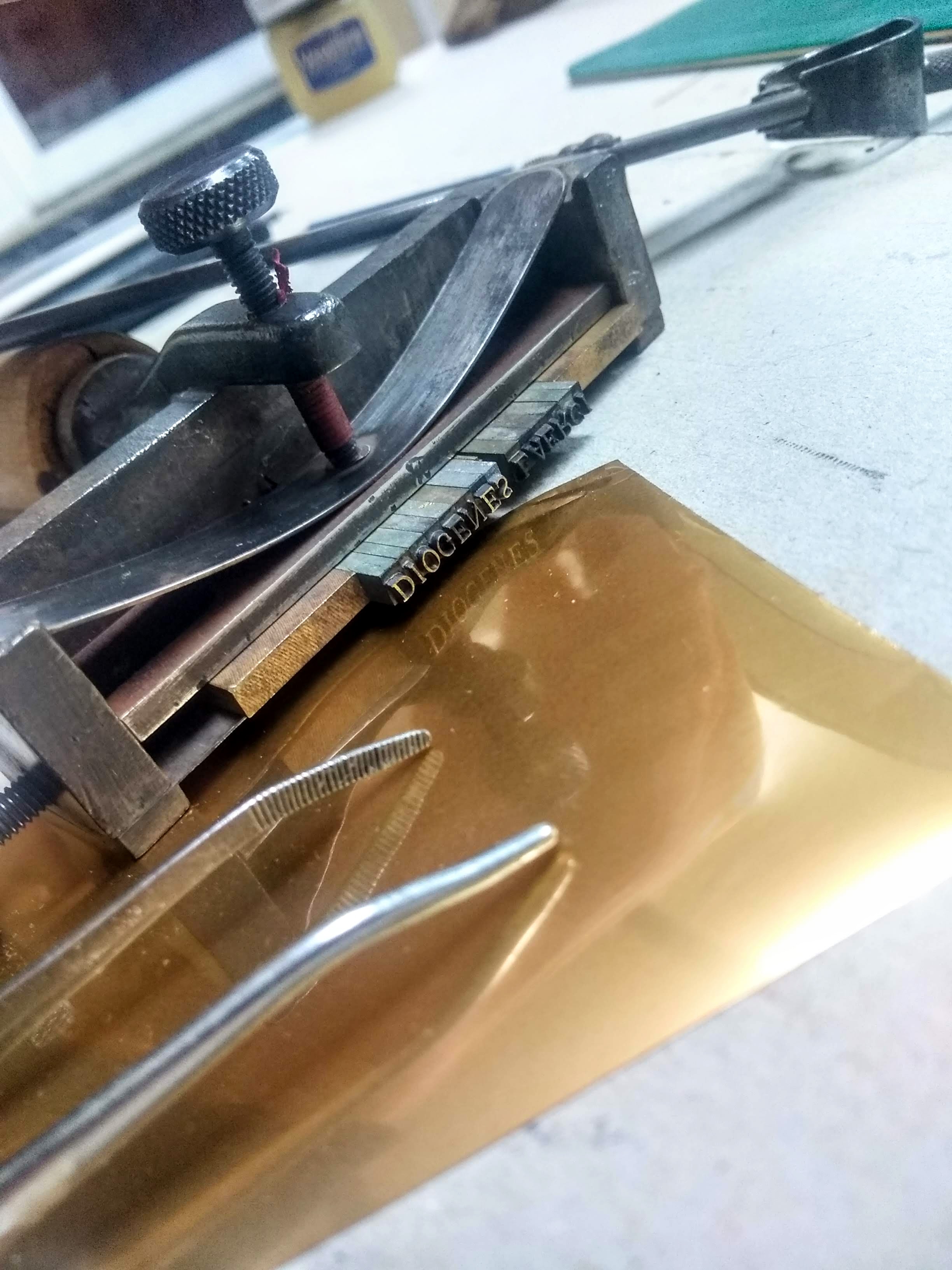 Además, si tienes una letra específica o un logotipo que deseas incorporar, podemos producir una plancha metálica en magnesio o bronce de acuerdo con tu diseño personalizado.